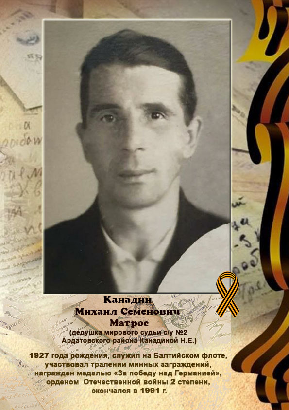 | В честь 80-й годовщины Победы в Великой Отечественной войне Ардатовский районный суд Нижегородской области начинает цикл публикаций в память о героях-участниках Великой Отечественной войны | версия для печати |